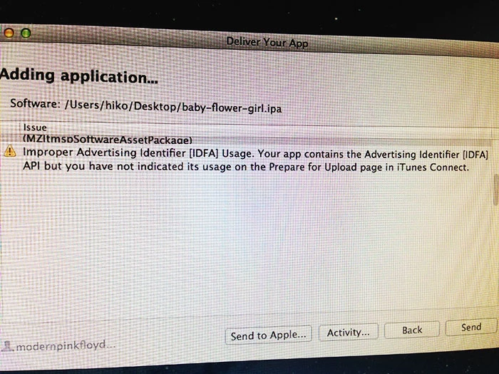 After, when I upload my app to apple with application laoder, but on mountain lion in VMware..