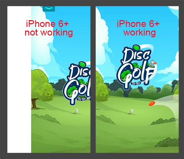 Here's the problem. On iPhone 6 the game shows the splash screen and then launches fine. On iPhone 6 PLUS the game shows the splash screen fine, but then sometimes launches off-center. Repeat it only does this sometimes. It's not every time but it's alot. Screen shots below.