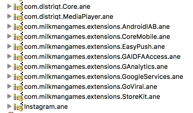 The app uses Citrus Engine and many libs (Starling, Feathers, TweenMax...) and somes ANEs :