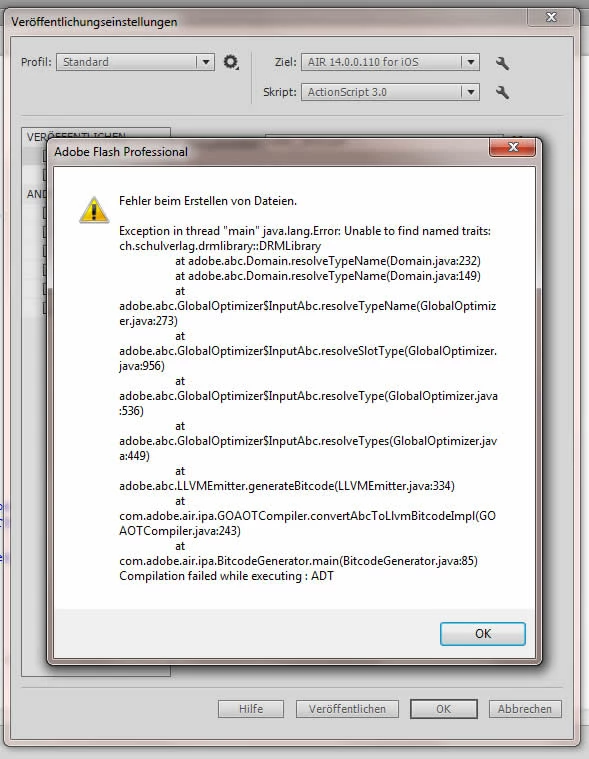 iOS publising - Exception in thread "main" java.lang.Error: Unable to find named traits:
