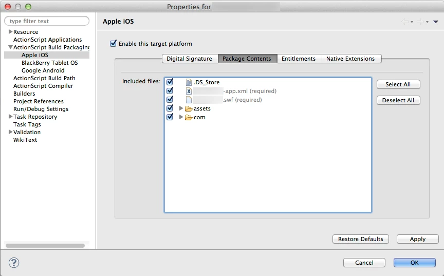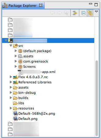 My development ambient is Mac (OS 10.7.5) and Flash Builder 4.6. The project is AS mobile (a puzzle game).