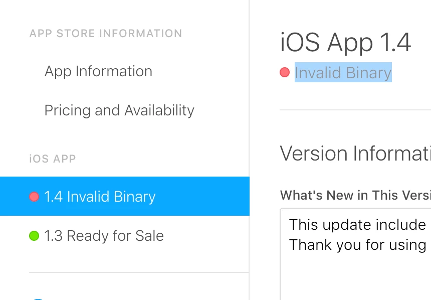 Once these issues have been corrected, use Xcode or Application Loader to upload a new binary to iTunes Connect. Choose the new binary on the app’s Details page in My Apps on iTunes Connect, and click Submit for Review.
