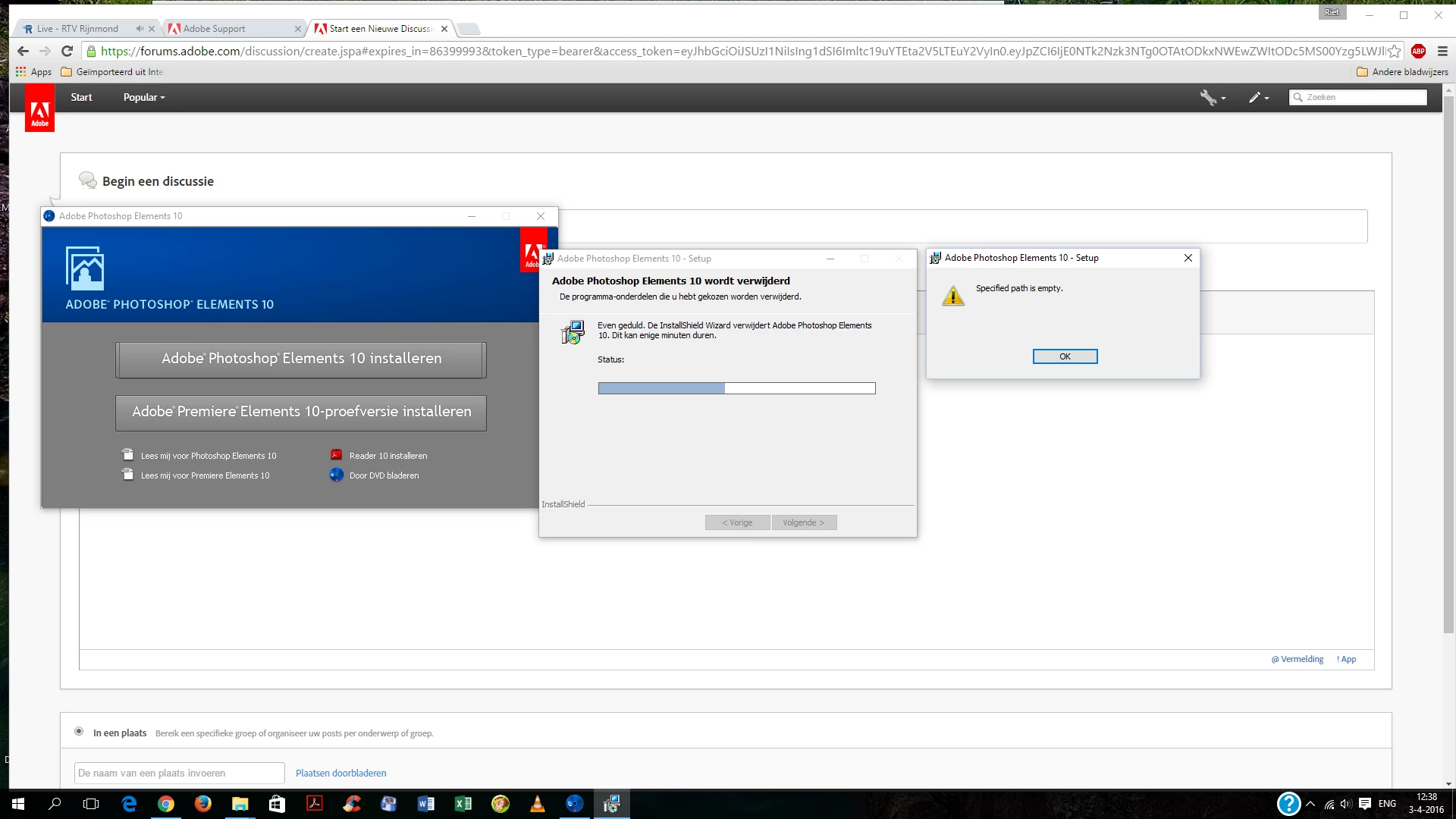 Probeer PE 10 te verwijderen en opnieuw te installeren,maar lukt niet.