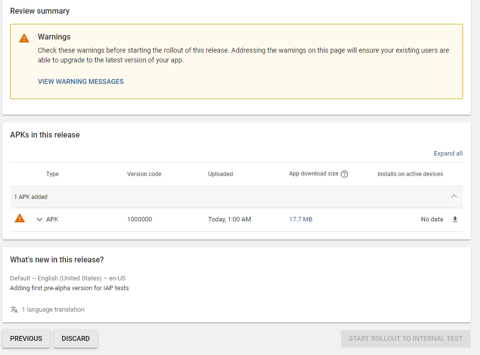 It requires .aab bundle file. I cannot even rollout the internal test. This is the screenshot. I'm using IntelliJ Idea. Any ideas on how to package it?