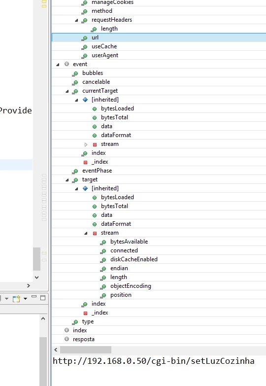 I am using URLRequest in my AIR for Android and iOS application. I have a microcontroller that has a server. I use a router that generates a fixed address for my card. So in my application, I send the command to the server microcontroller that filters the command performs the action and returns the state of the board. In the simulator, I send the command and caught the return normally. On Android or iOS, I send the command, it performs the action, but the return comes as undefined. I do not know what else to do. Below is my code: