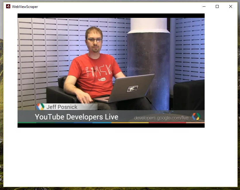 When I saw it wasn't working, I used StageWebView(true) instead, which uses the machine's system default web engine. This doesn't successfully load the YouTube iframe API, so no video window appears at all.