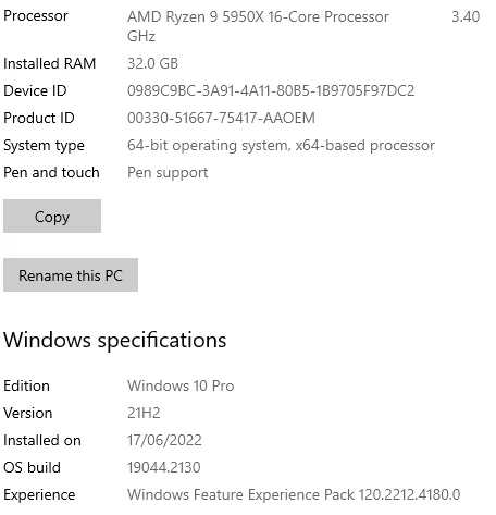 Windows 10 Pro, 21H2, 17/‎06/‎2022