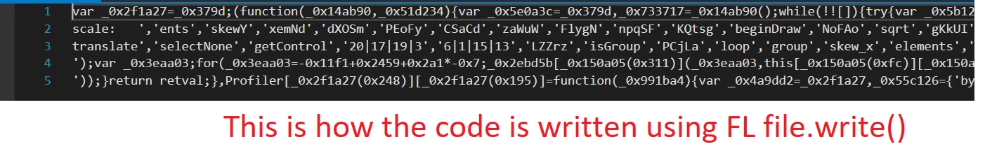 I have a very long code that needs to be written to a file using FL file.write(). But in the file, the code that should be written in one line is written as several paragraphs. Because of this, my code doesn't work. Is there a way to fix this problem?