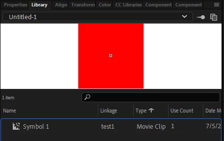 I have imported an .svg from inkscape to the library, converted it to a movie clip (test1) and I want to be able to add the movie clip to the stage using javascript. Here is my latest effort.
