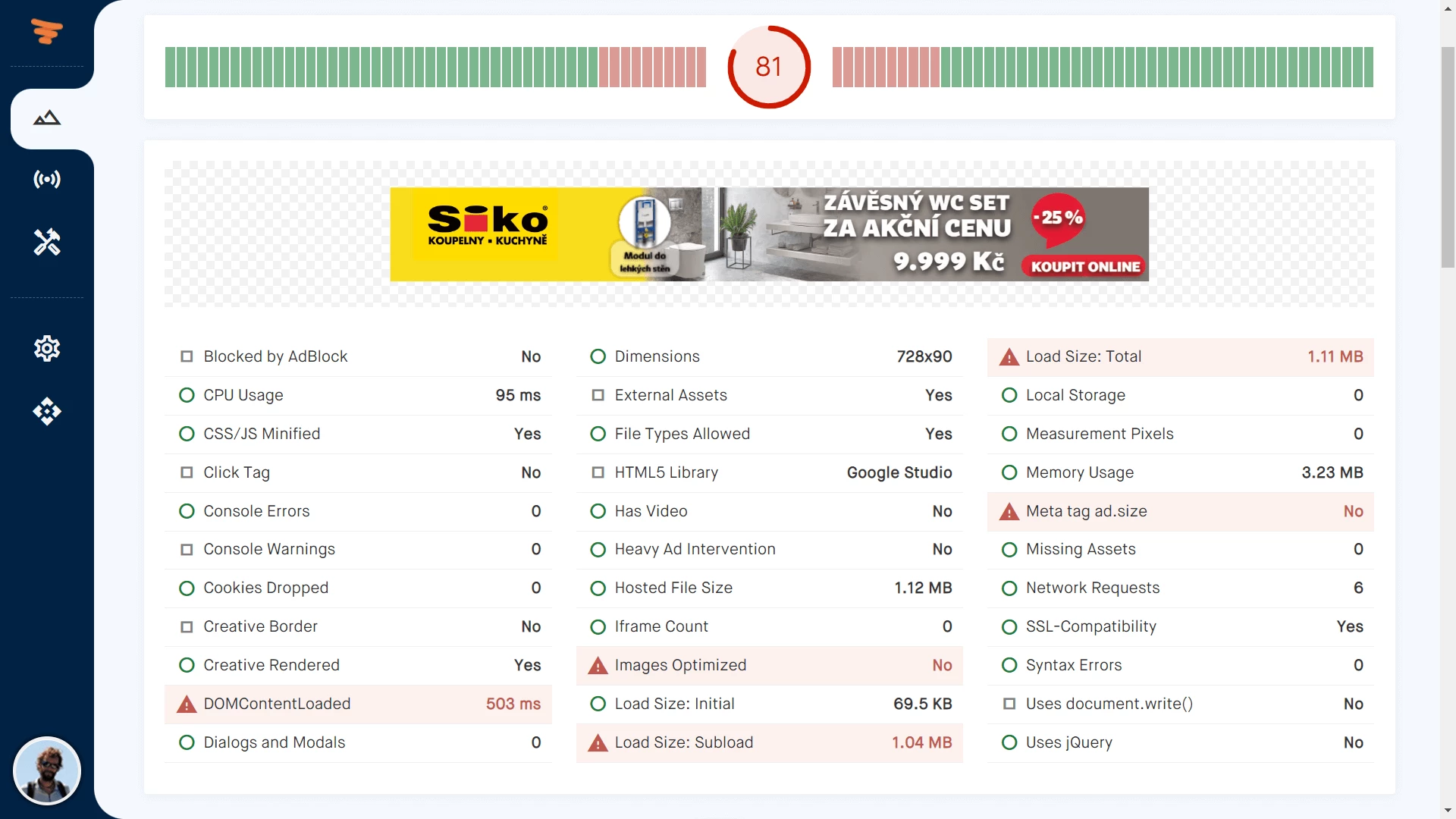 Ad validation checks on HTML5 creatives