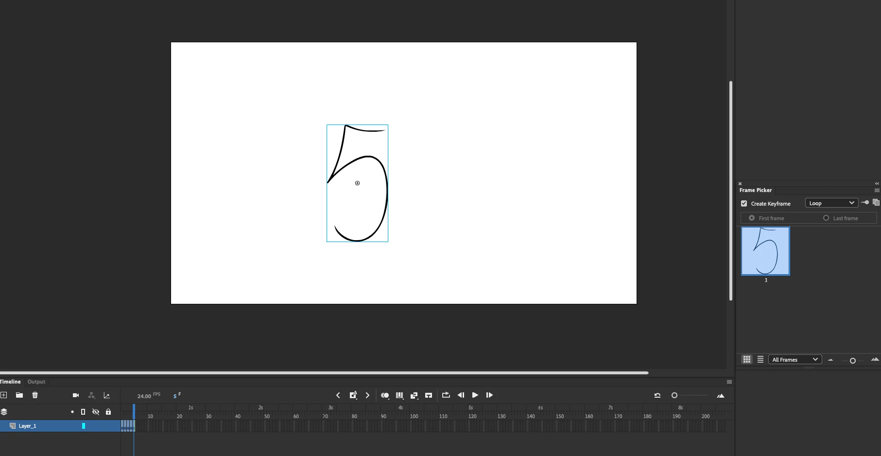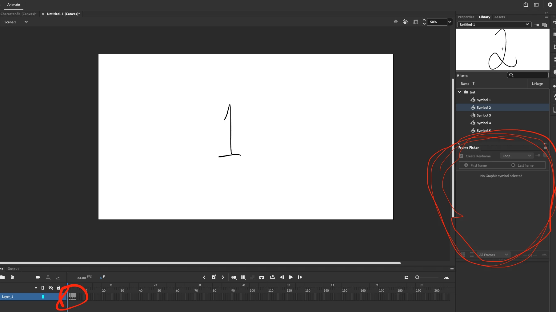 add a few keyframes to graphic symbol 5 and check the frame picker again.