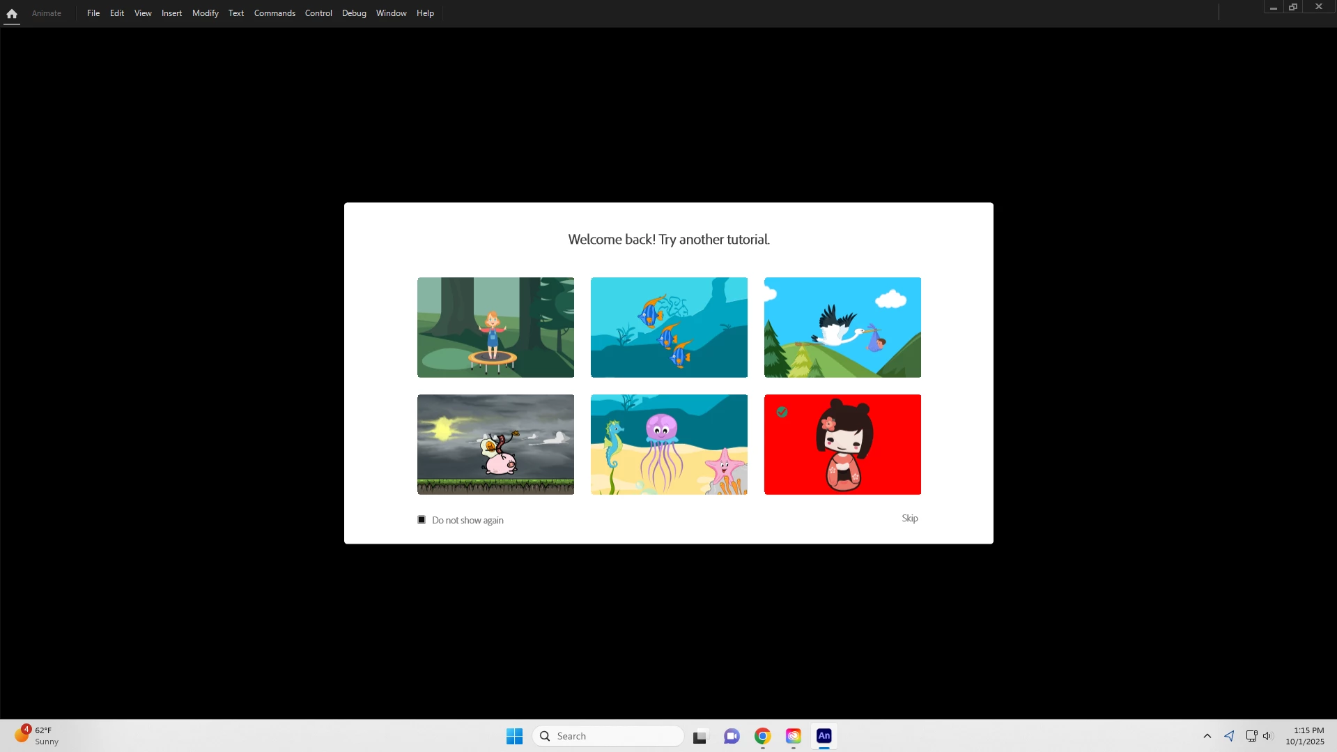 Whenever I open Animate, the hands-on tutorials show up, but when I click on them, the actual tutorial doesn't show up.