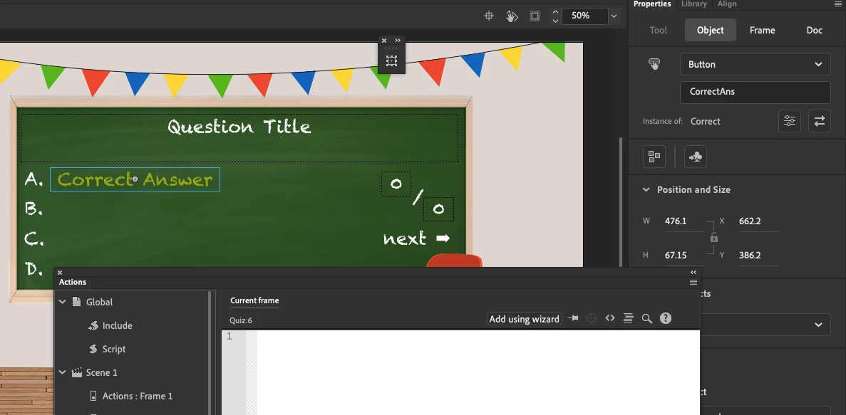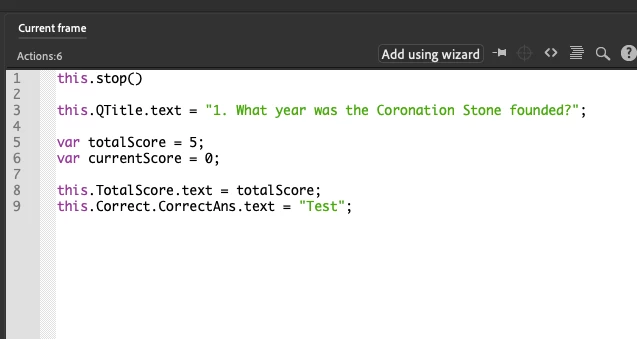 I am currently creating a quiz and would like thouse buttons to be moved onto the next scene with different text input.