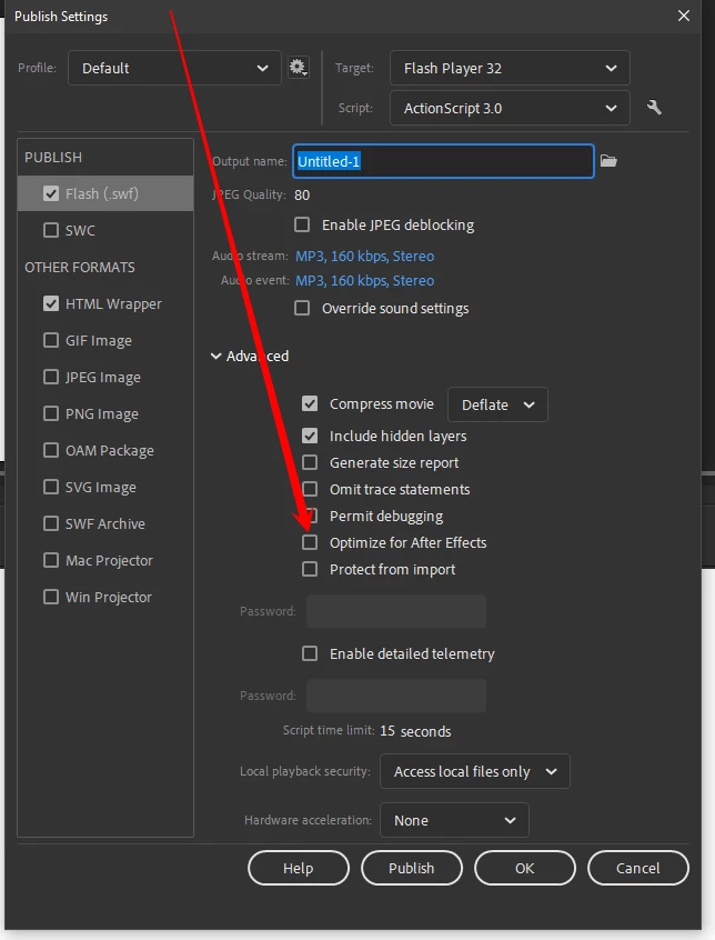 Adobe Animate: Layer effects are disabled in the SWF FILE