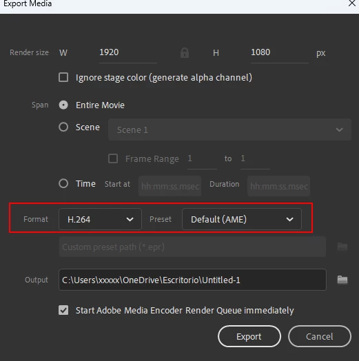 Adobe Animate not exporting as mp4