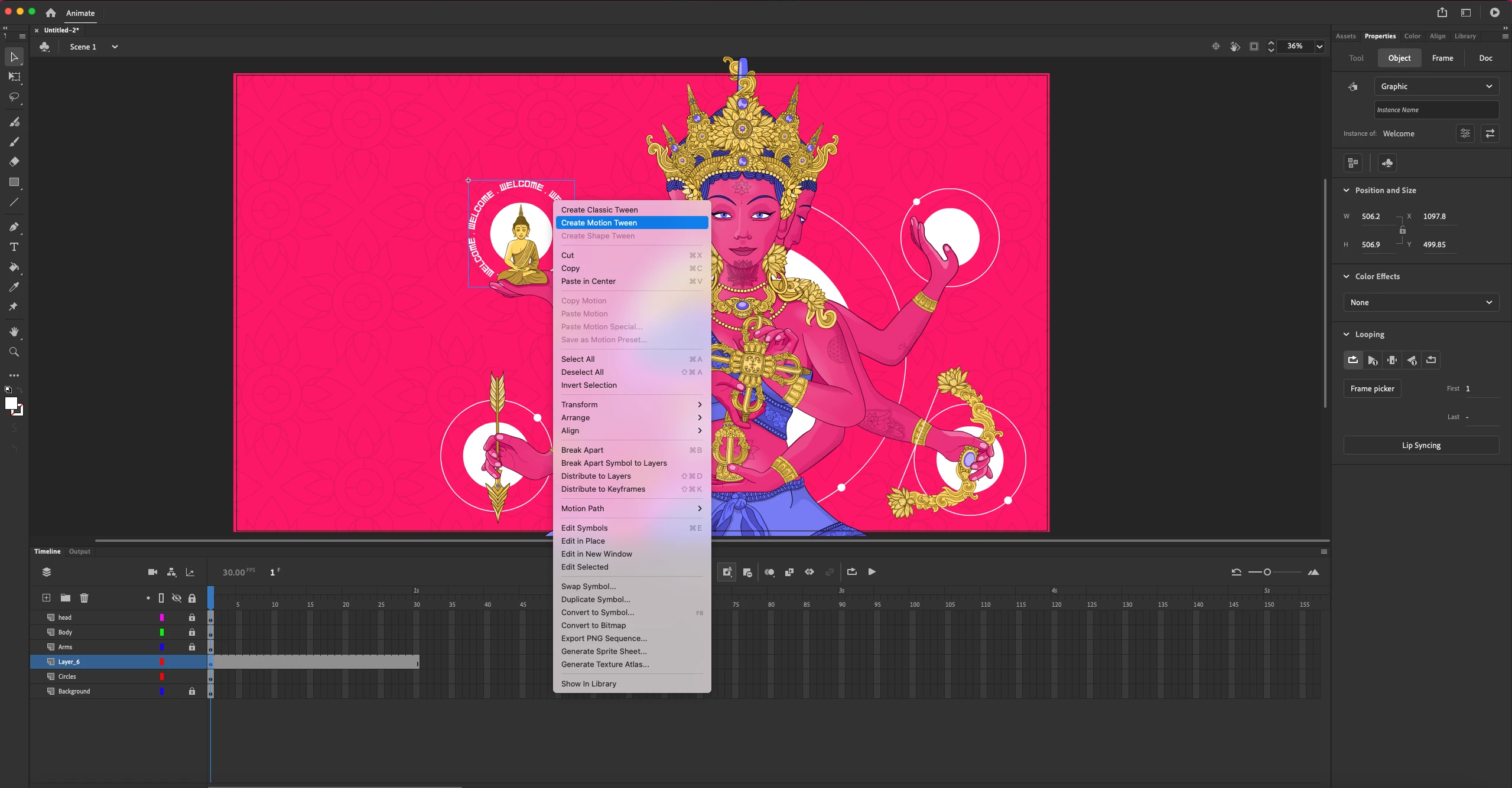 Im importing an illustrator file, and it comes imports correctly, but when i try to create tweens from my symbols, the screen just turns into whatever the stage background is, it reverts back when i undo "create motion tween"