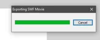 The swf simply will not export, no matter how long I leave it. It just stays on the "Exporting movie" green loading bar for eternity. It's not even a big file, like 24 mbs.