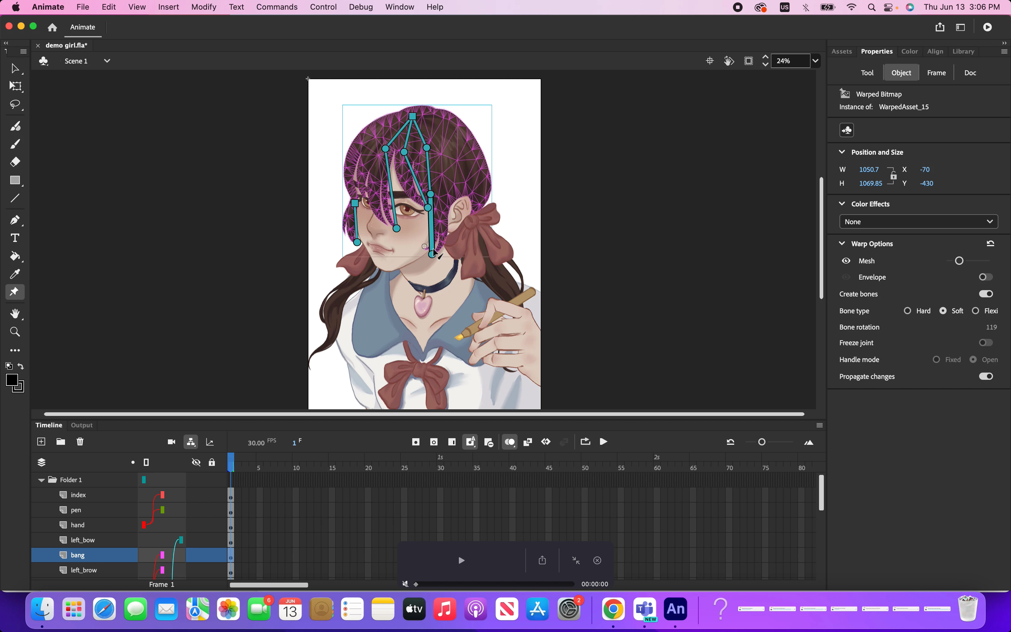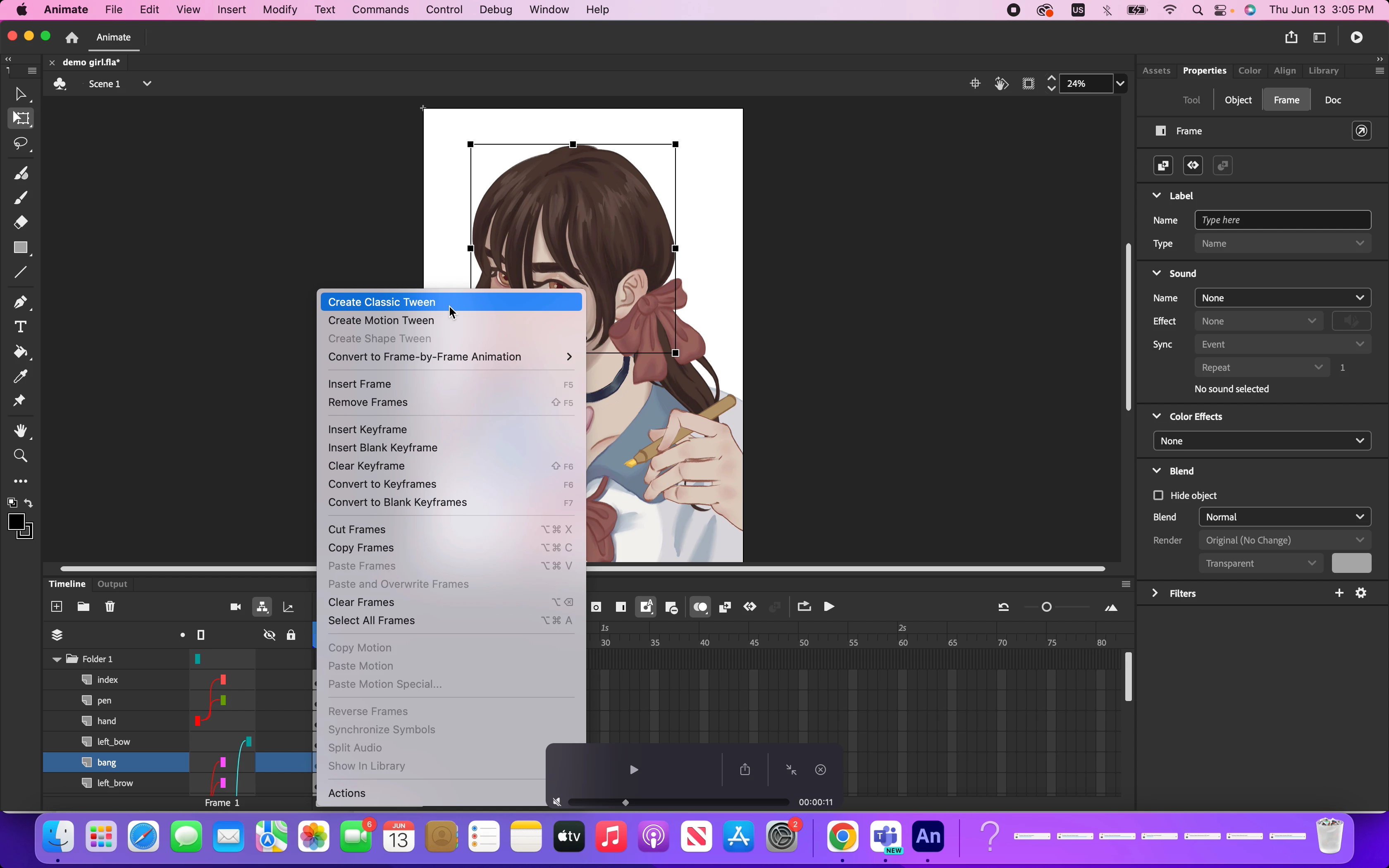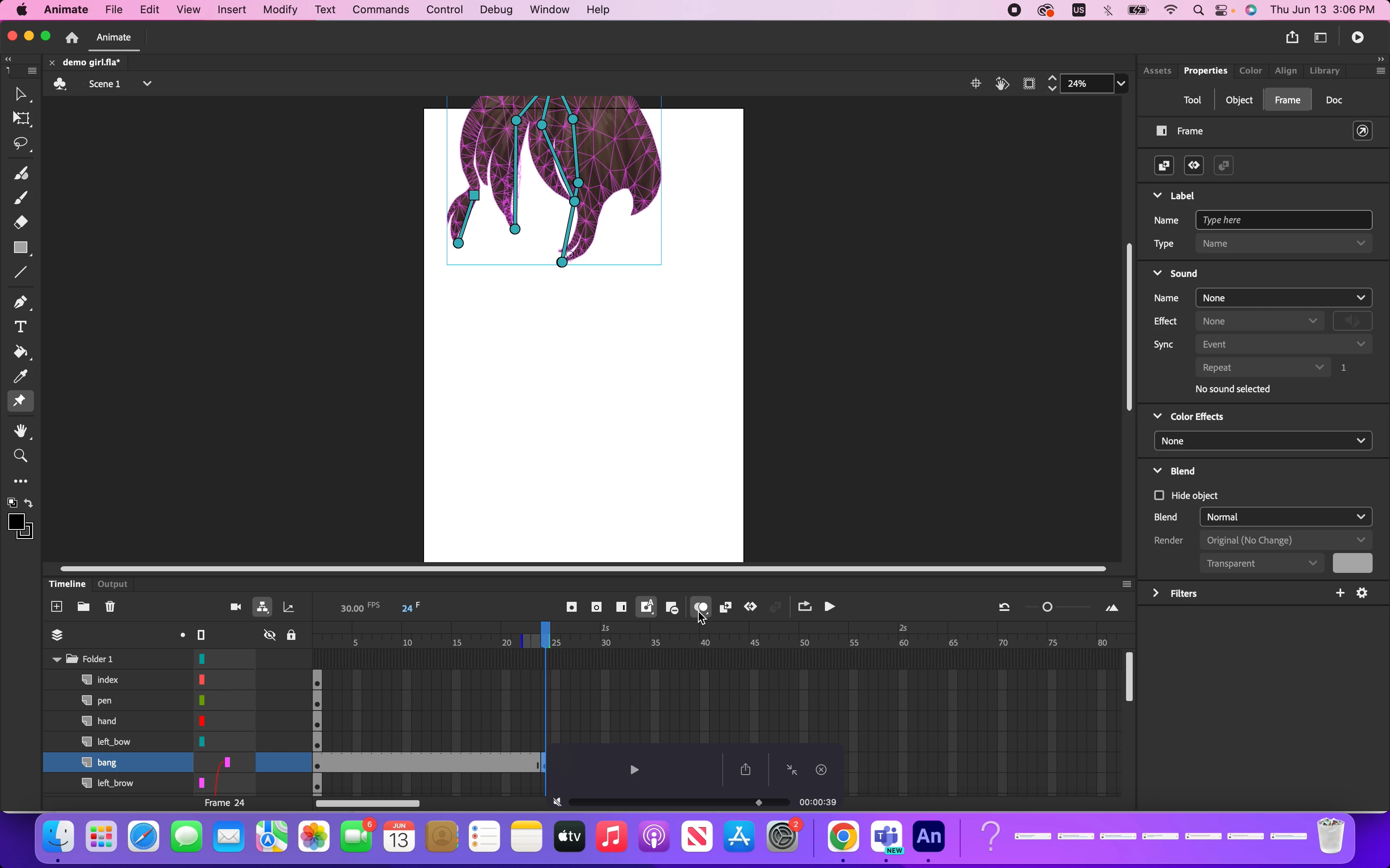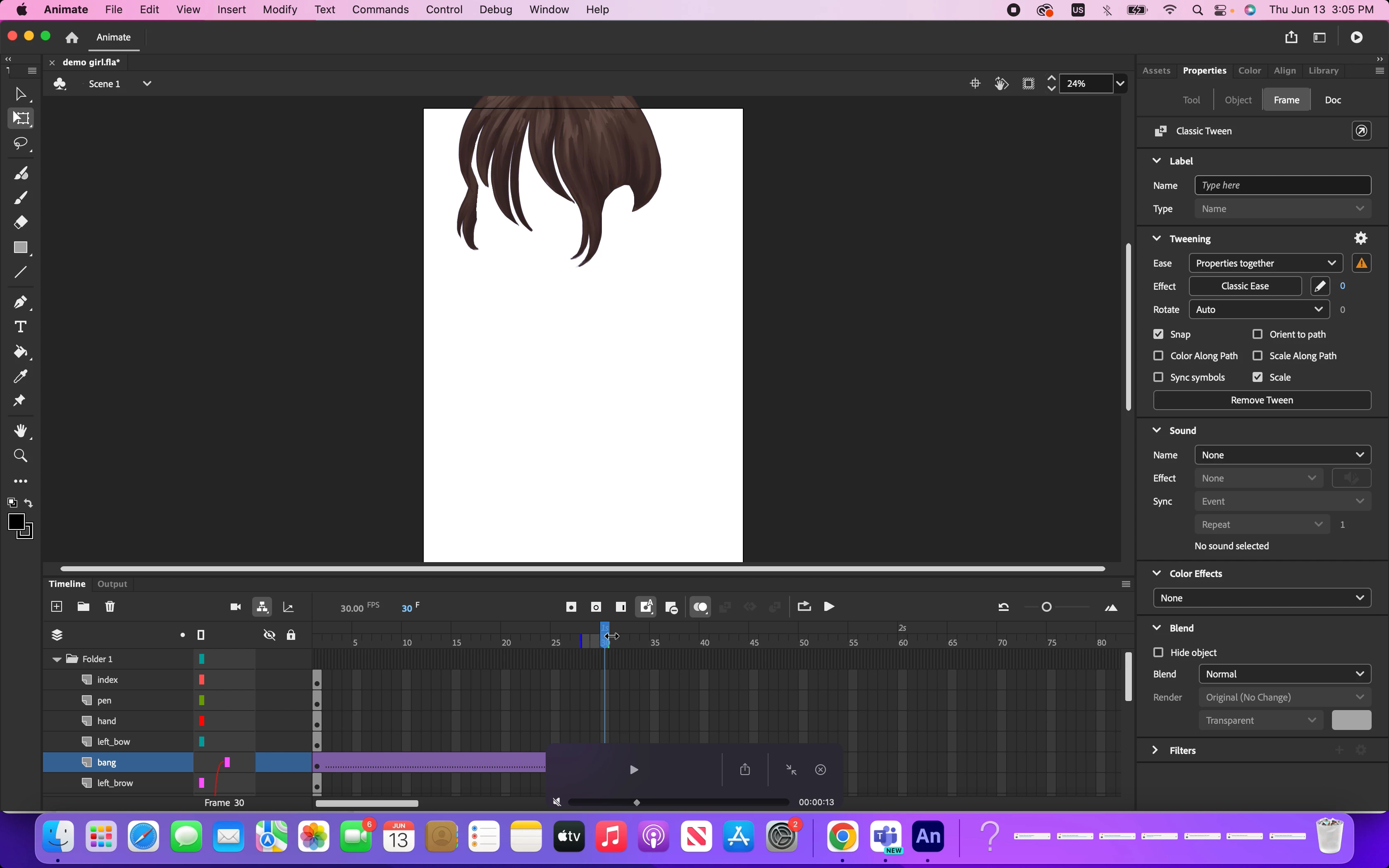 I have 17 layers of different parts of this character's body under one folder. They're all parented. I want to add keyframe/insert tween but if I do so, every other layers will disappear. Plus, I moved the playhead to 30 (1s) and tried to make some changes with the wrap tool (W) there, but the playhead would move back to 0s.
