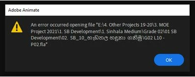 while im working in Adobe Animate 2022, there was an unexpected powercut and i had to close my animate software quickly because my UPS is not a good one. It last only 10-15 seconds only. So i saved my file in no time and close Animate software. And exactly at that point my computert also went off. Then after few hours, i tried to open my Animate file (fla.), But this mentioned massage " An error occurred opening file ...." appears at the screen. (I have attached a Screenshot of that message). i don't know what to do. Is there any way i can open this file. Cuz this file contains my 3 days of work. Thanks. (Im really sorry about my English. I hope u can understand what i said).