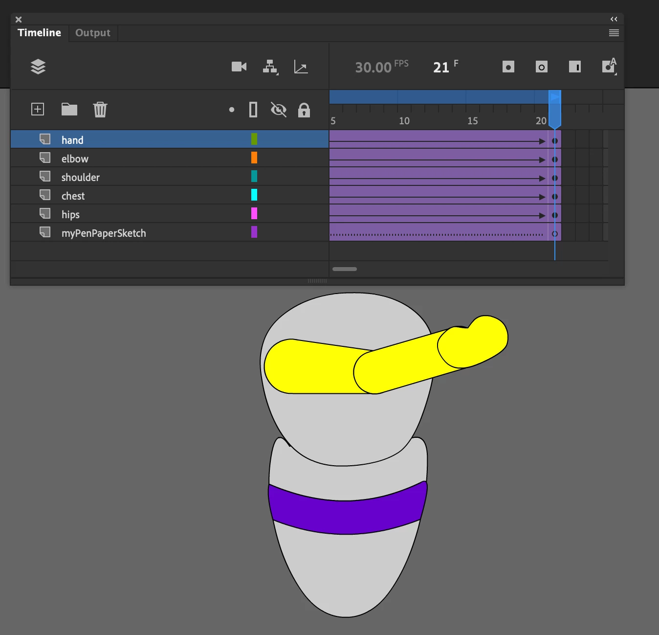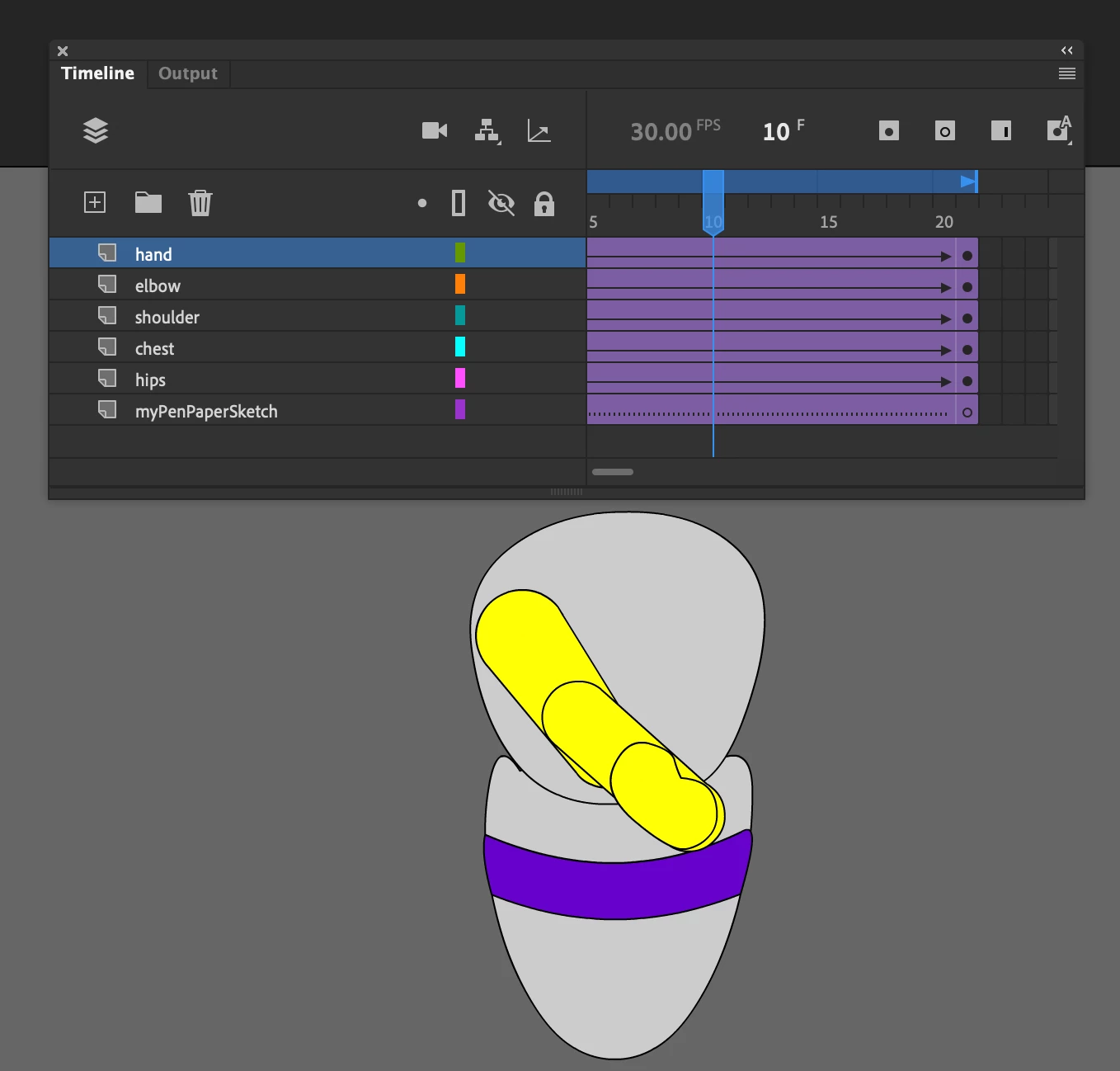 Also, note that each symbol ("Body", "UpperArm", "LowerArm") has it's Registration point set to the top middle point which iswhere the joint or Transformation point (anchor point) would be.