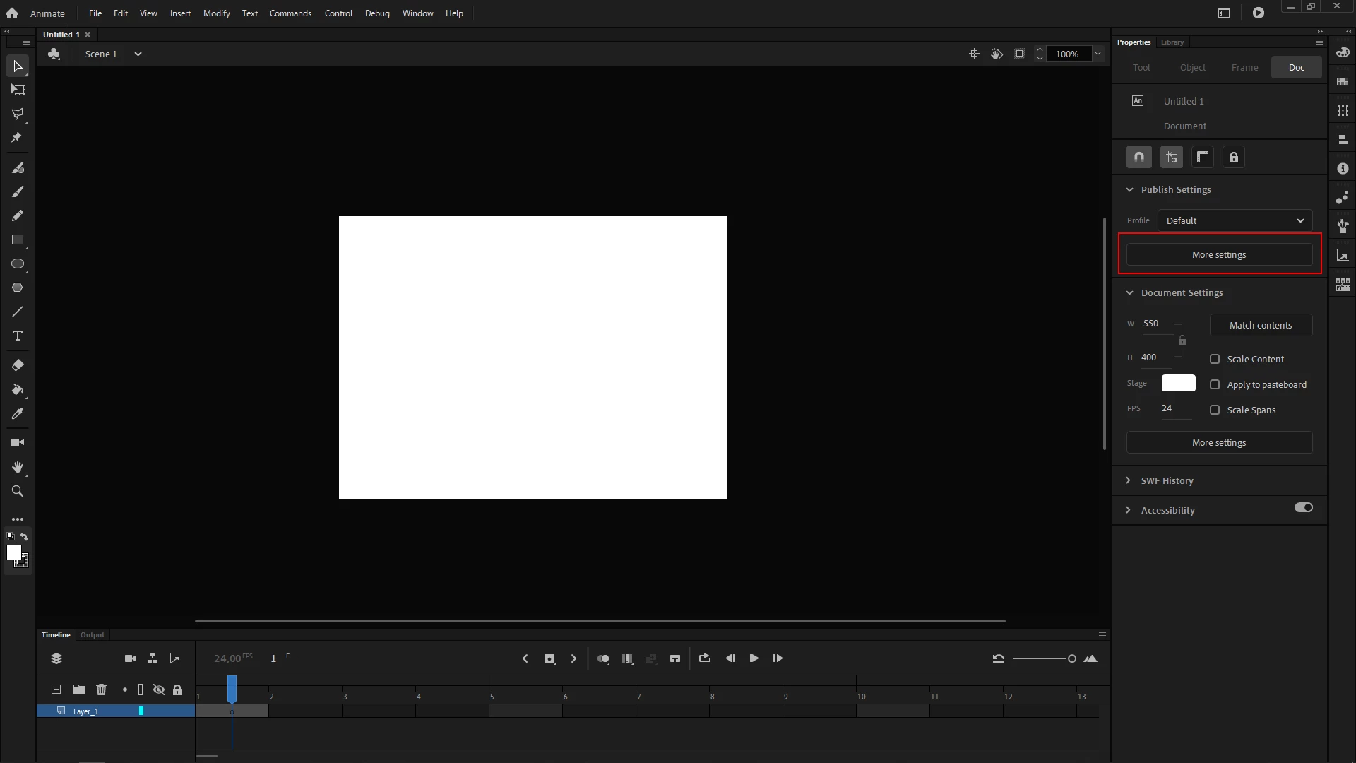 2 - Go to the Properties Panel e click on More Settings;