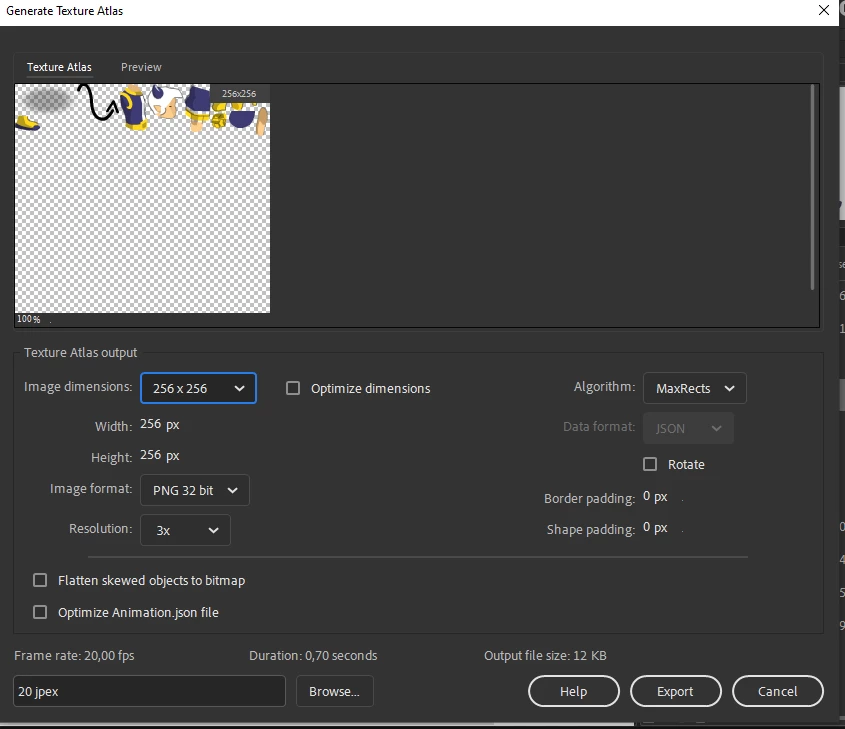 Animate 22.0.2 resized Texture Atlas shapes position problems in the resulted "atlas.png"