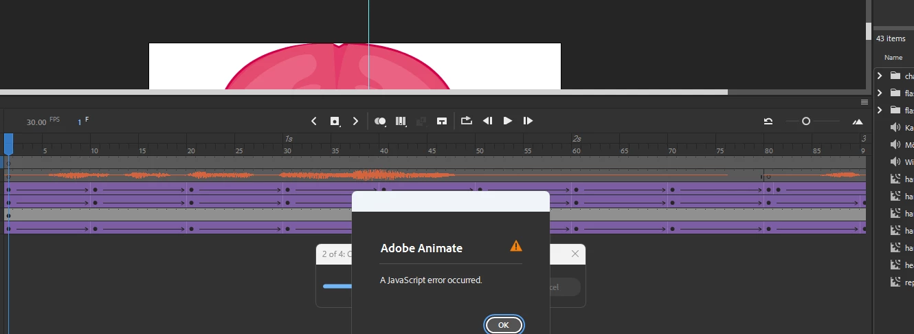 Animate Adding audio file creates javascript error on publishing HTML5 canvas