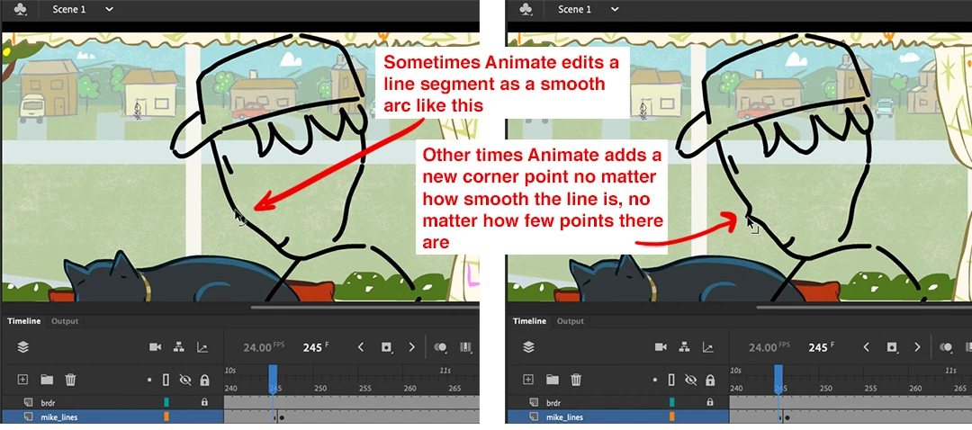 Half of the time I'm editing line segments (created with the pencil tool) Animate adds a corner point and just pulls out the point with a really tight arc. Image below shows what I mean.