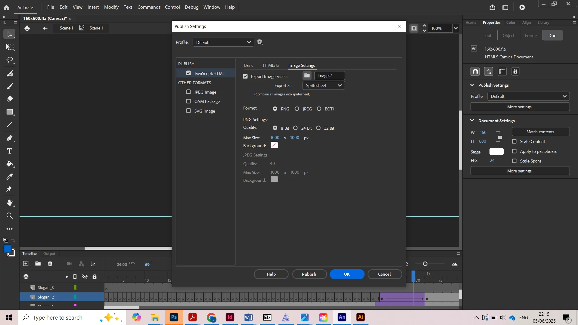 The publish settings are set to export as a spritesheet but it seems to no longer work. Can anyone help resolve this issue?