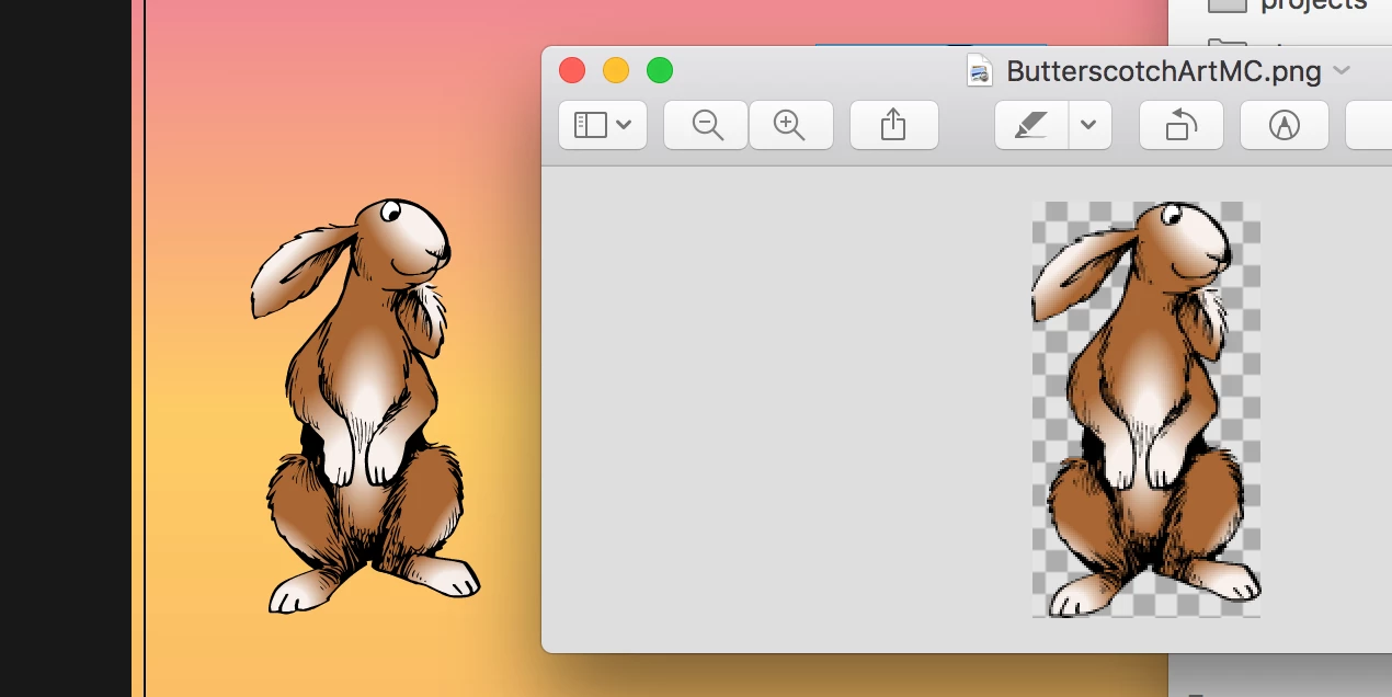 On the left is the symbol on the Animate stage, and on the right is the exported PNG. As you can see, it's not great 😞