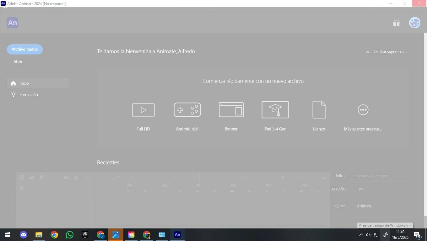 Hi, I started using Adobe Animate about 5 days ago. Yesterday, I finished my animation and was able to export the video, but since it had no audio, I tried exporting it again. After that, Animate stopped responding and now I can't open the file or even open Animate itself – it just freezes and shows "Not responding."