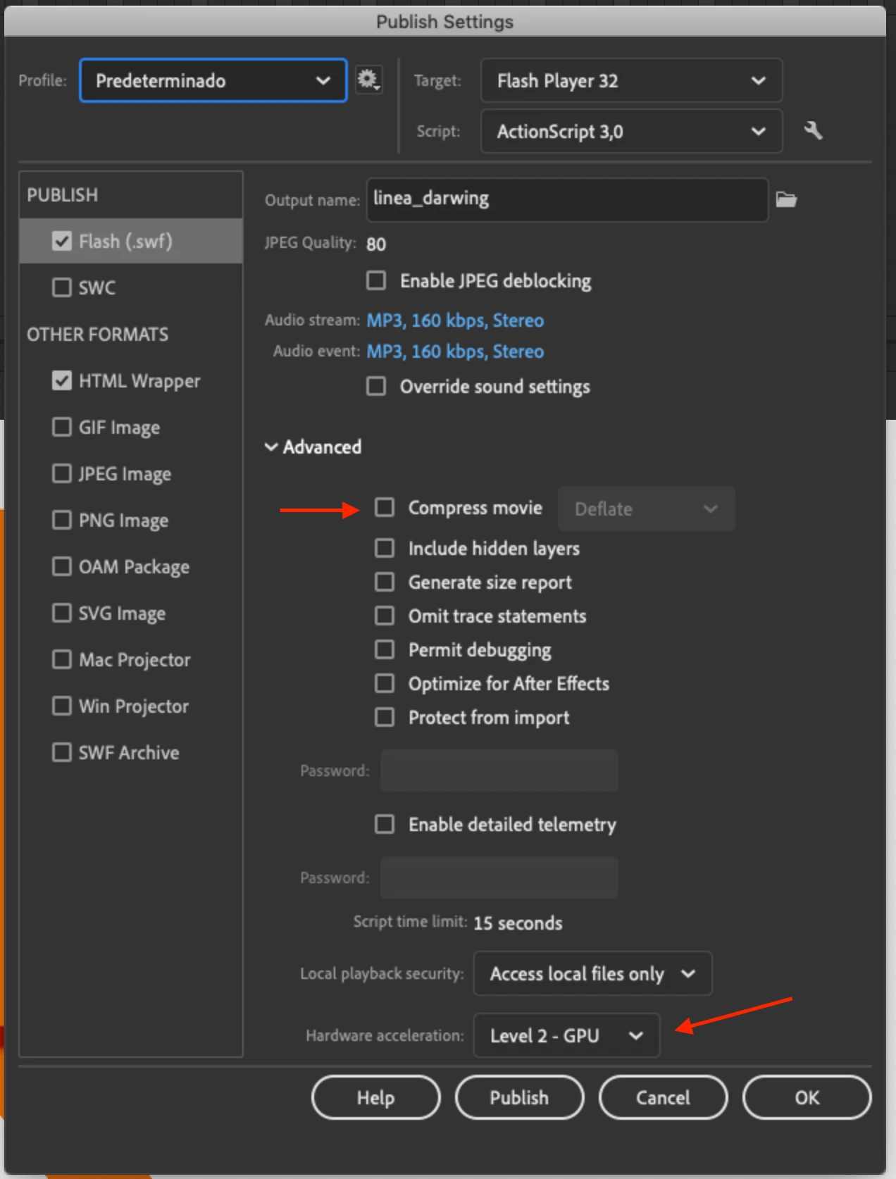 So if anyone has any idea what the issue is PLEASE reach out to me. Below is the examples of the glitched out animation and screenshots of my publishing/exporting settings