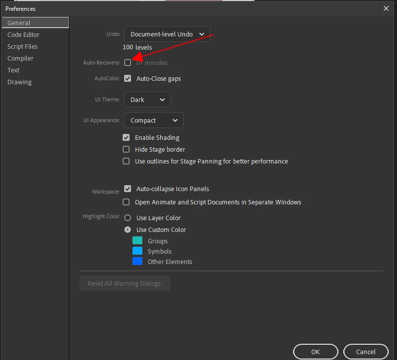 so, i just installed animate cc an everything's been fine until i noticed... there's no autosave option. i didn't found one in the program, i haven't found anything about it on the internet too.