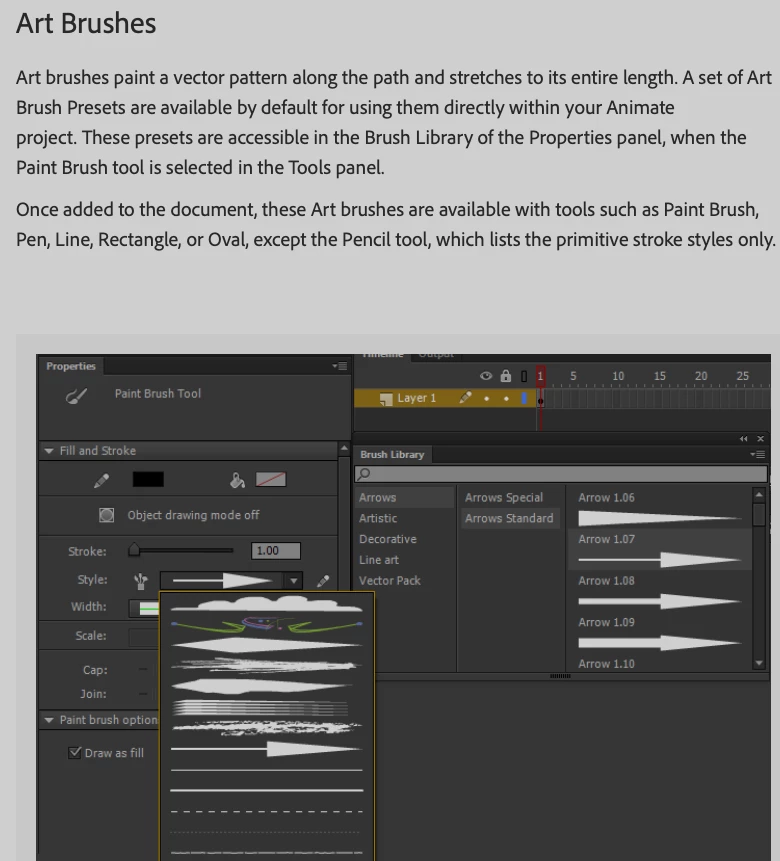 I cannot figure out how to apply the art brush styles. I've done this a while ago, but it's not apparent to me now where it is. I looked up the Adobe help, and the brush is called "Paint brush tool". Mine is called "Classic brush". Is there a paint brush tool somewhere that is different than classic brush? I don't have the style drop down, etc.