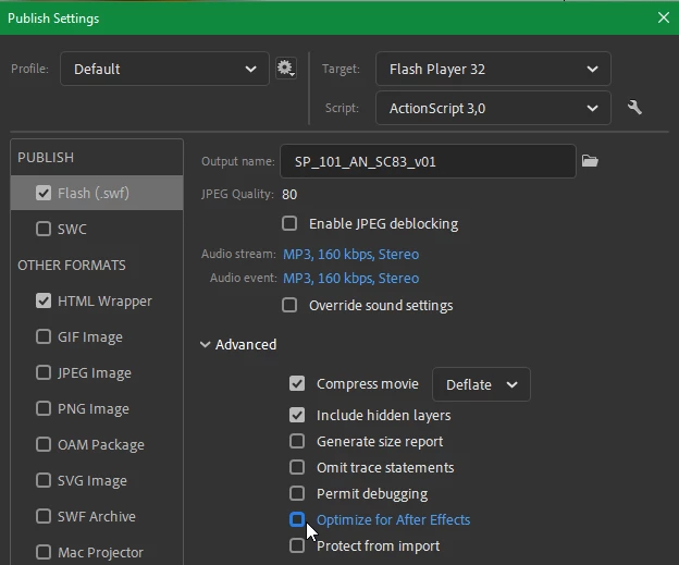 I've been trying to use layer effects on Animate CC 2020 with After Effects 2020 (actionscript 3 file, not html5 canvas) and they are simply not been exported. Advanced layers are checked, i tried importing both .swf and .fla files, i've tried exporting different .swf versions - and i actually have tried exporting a movie from Animate itself* and EVEN THEN layer effects are ignored. There is a message on the output panel that says that layer styles are DISABLED on .swf...
