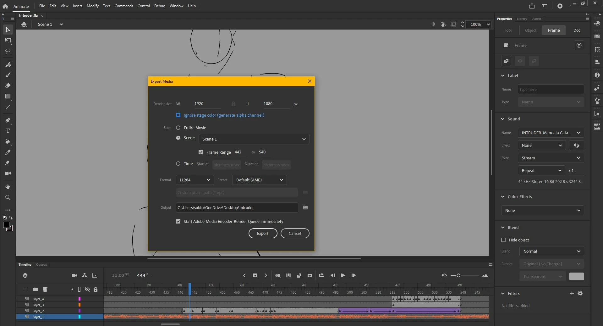 I am working on an animation, and I want to show work in progresses of the sections I have animated. However, the only way to export video/media with audio is by clicking "Entire movie" instead of being able to select the frames I want in "Scene". The movie exports with the specified frames, but the audio is not present. My audio sync is currently set to stream, so it should by all means be functional, but the clip keeps downloading as silent. This method has worked for me in the past, so I don't understand why it's doing this now. I have restarted my computer and by extension, the program. I cna't think of how else to fix this.