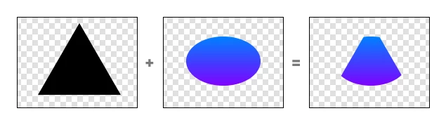 Notice that both the triangle and the ellipse have alpha channels, and the result is an intersection of these alpha channels. The RGB channels from the second image are used, and discarded from the first.