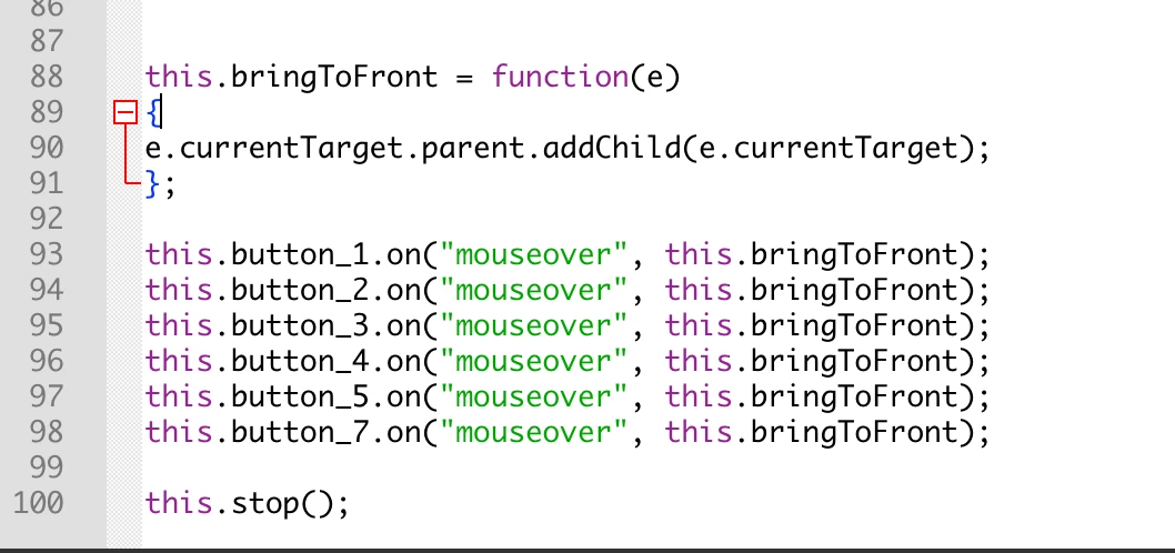 I have 5 buttons, the hover states of the buttons are bigger than the original so when rolled over they the other buttons overlap the hover state. (See jpg.) I want to bring the button that is being hovered over to the front.