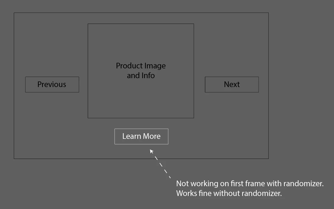 It's always the button on the first slide that doesn't seem to work with the randomizer. I know it's the randomizer, because without it, the button on the first frame works as it should.