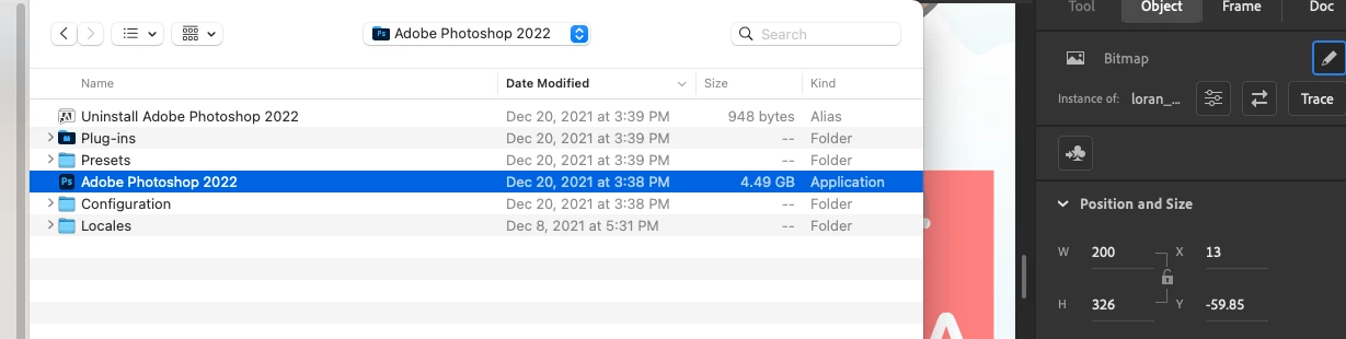 Normally, we click the image in a graphic symbol and click edit, PS opens, we change the product and save it.