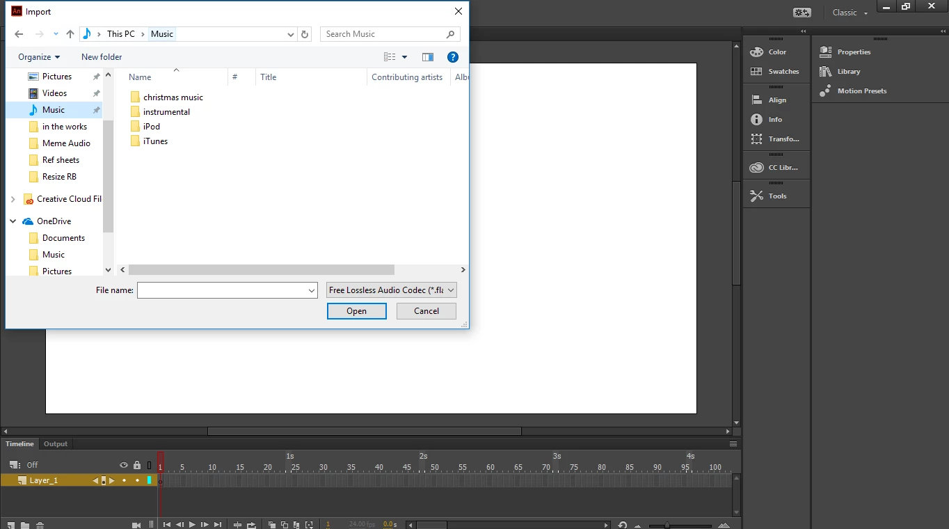 Can't import ANYTHING into Adobe Animate