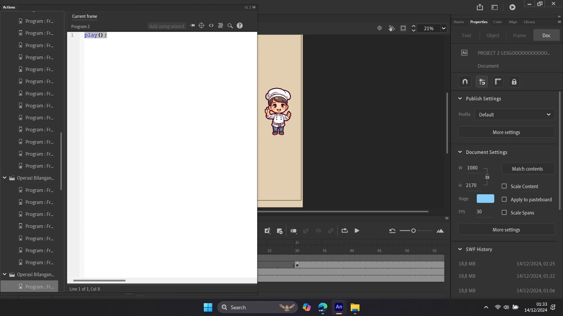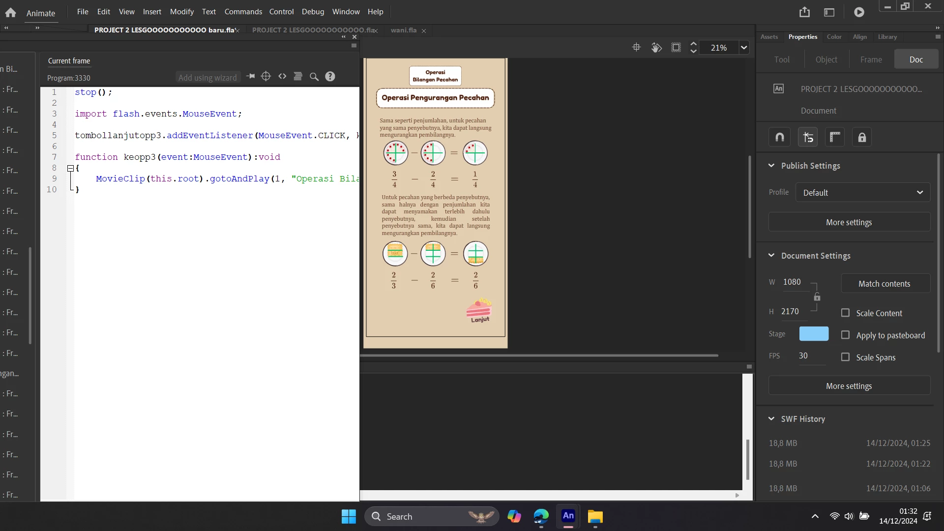I am currently working on an animate project, but I have a problem that I am confused about. That is when testing swf or publishing apk, when pressing the next button, the animation does not continue. In fact, previously with the same code. It runs normally. What is the solution? I have tried moving the problematic frame to a new scene. But it did not work. Please help me!