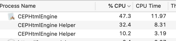cephtmlengine is taking up an incredible amount of my CPU usage. This has been discussed in other forums with adobe providing a solution but it only addresses other apps, not Animate, so it's not possible to apply the solutions to Animate.