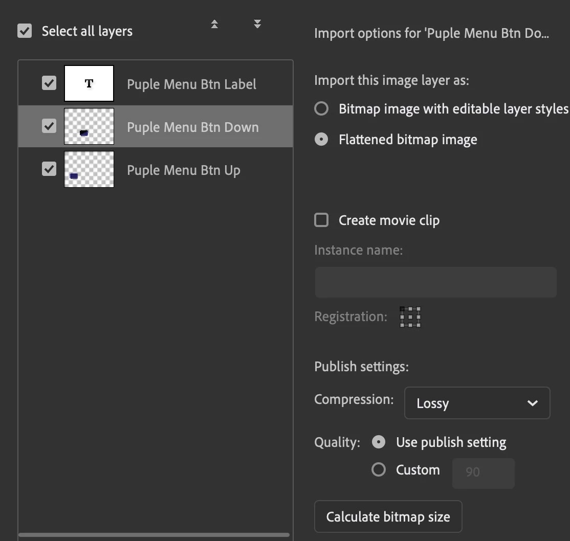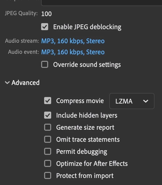 I would like to change the compression default so that each time I import images to the Stage or Library, Lossless is set. In Export settings there is no Lossless setting, only what's shown in the included image which doesn't seem to affect the default Import settings. I also can't find a way to set the Default Profile or create another profile that is available everytime I make a new FLA file.