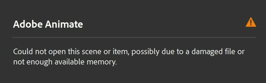 Could not open this scene or item, possibly due to a damaged file or not enough available memory