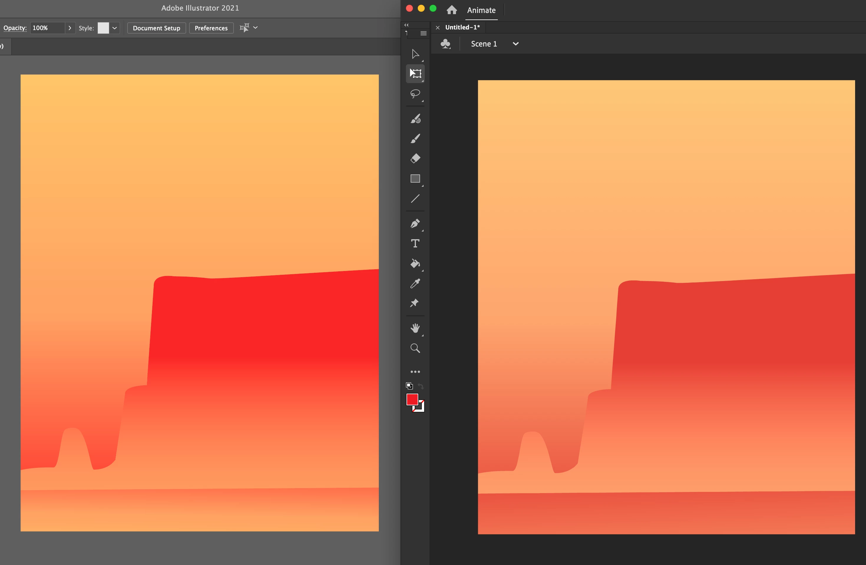 When importing files from Adobe Illustrator to Adobe Animat, the colours change slightly in AN to a more faded and dull version (see screenshot).