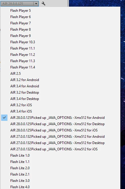I upgraded the Adobe AIR SDK to version 28.0.0.125 through the Manage AIR SDK with Flash Professional CS6. After this update, Flash Professional is no longer able to publish the application to Android.