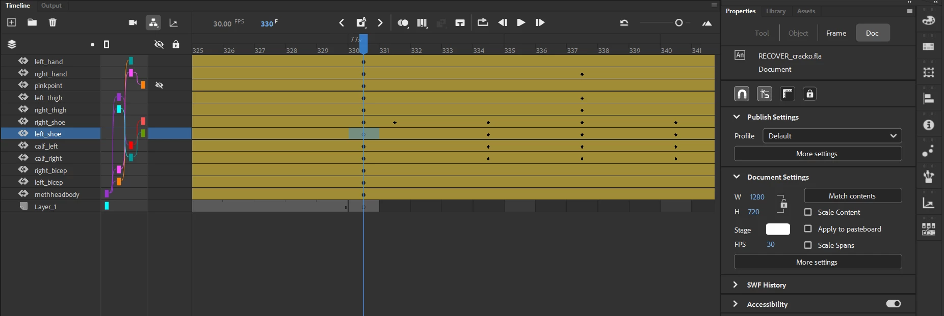 I'm new to animate and I am trying to keyframe a simple character. However, I accidentally did something causing the departure keyframe on one layer to turn blank, Which in turn made that entire layer dissapear from the scene. I'm sure its a simple non- intuitive oversight, but Its had me stumped for the better part of an hour.