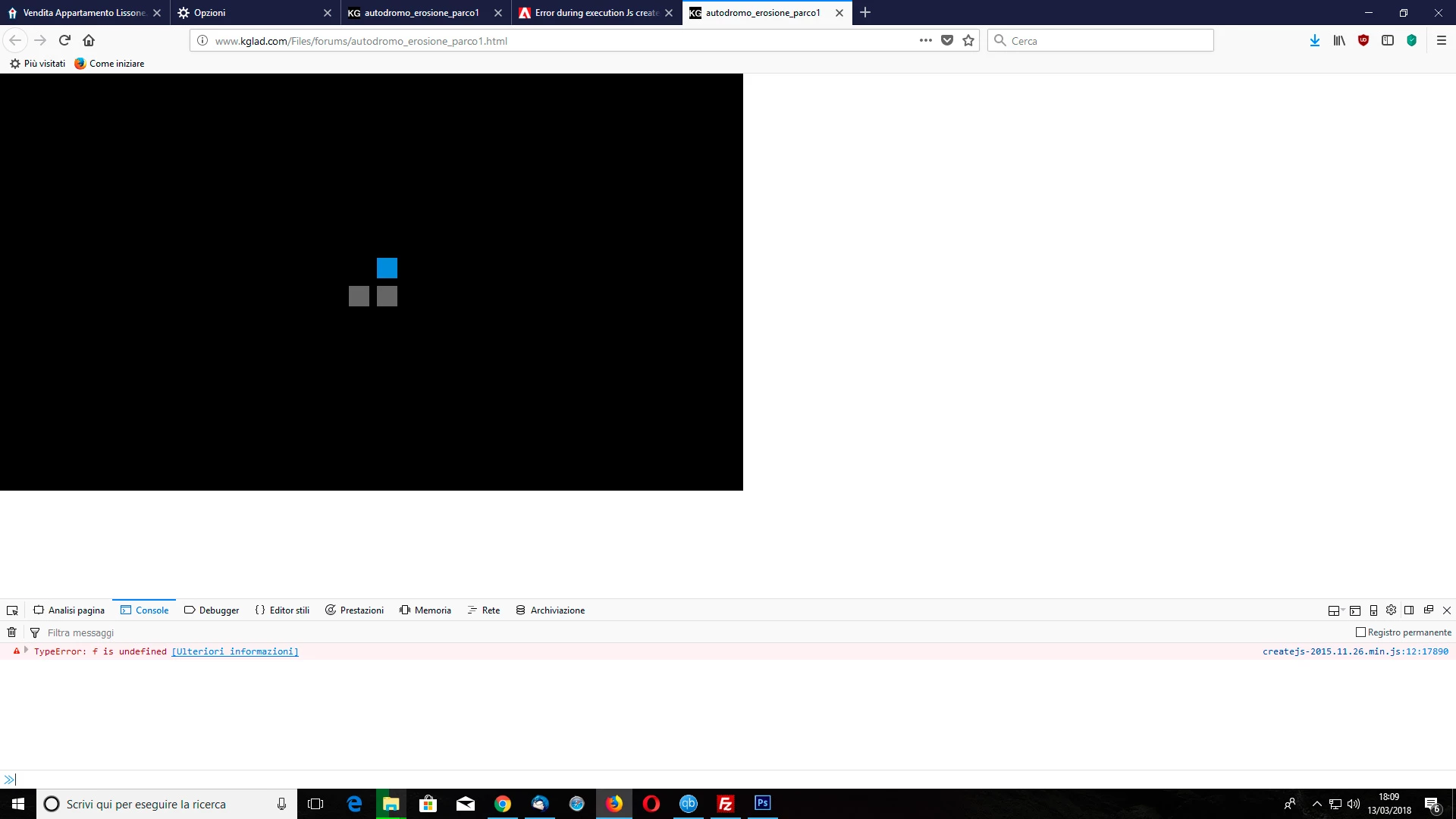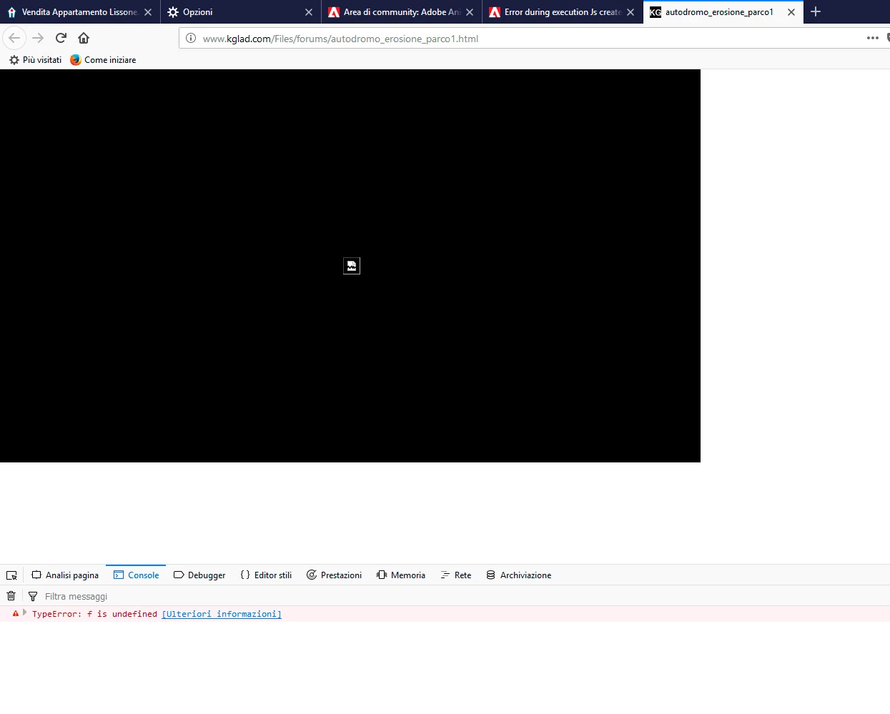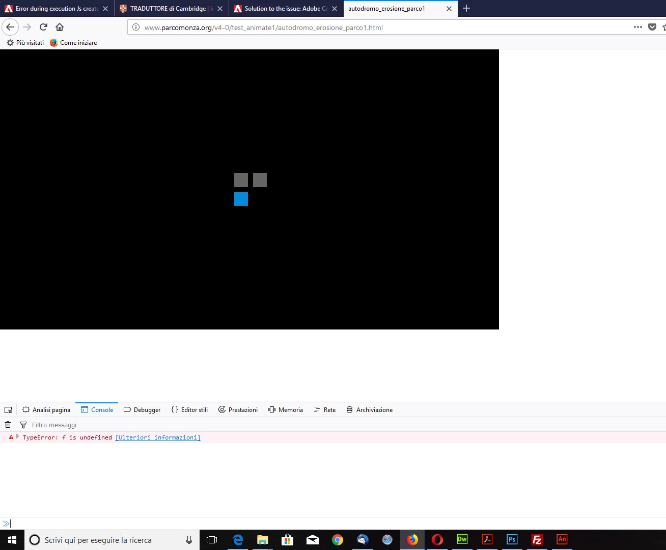 Error during execution Js created by animate