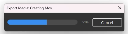 I am exporting my animation and added to Media Encoder, I have tried JPEG and a couple other formats and they seem to not work. My animation is roughly 25 minutes long and 160MB. I have enough storage easily to export and I am not sure what's causing me to be stuck at 56%, any help?